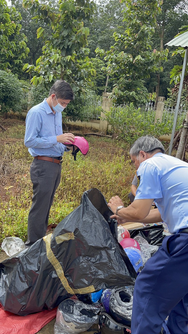Sáng ngày 10/9/2021, tại trụ sở của Đội Quản lý thị trường số 2, thôn Tân Hòa, xã Bù Nho, huyện Phú Riềng, tỉnh Bình Phước chủ trì, tổ chức tiêu hủy trên hàng hóa là tang vật vi phạm pháp luật được phát hiện, xử lý, thu giữ sau các đợt kiểm tra, kiểm soát thị trường trên địa bàn Đội quản lý năm 2021 theo phương án đã được phê duyệt tại Quyết định số 92/QĐ-CQLTT; Quyết định số 93/QĐ-CQLTT ngày 01/9/2021 của Cục Quản lý thị trường về việc phê duyệt phương án xử lý tài sản là tang vật vi phạm hành chính bị tịch thu của Đội Quản lý thị trường số 2