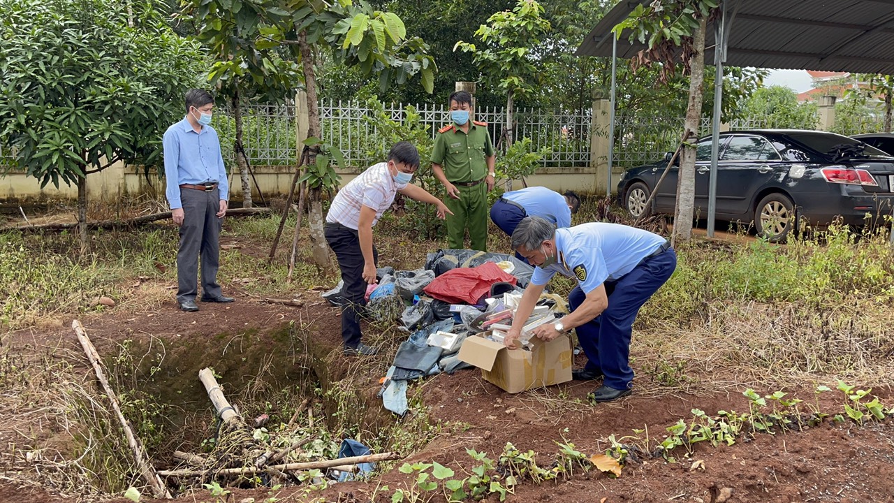 Số hàng tiêu hủy là tang vật vi phạm hành chính bị tịch thu gồm: Quần Jean các loại; mũ bảo hiểm; ốp lưng điện thoại; thuốc lá điếu. Các loại hàng hóa trên điều là hàng cấm và không rõ nguồn gốc, xuất xứ.