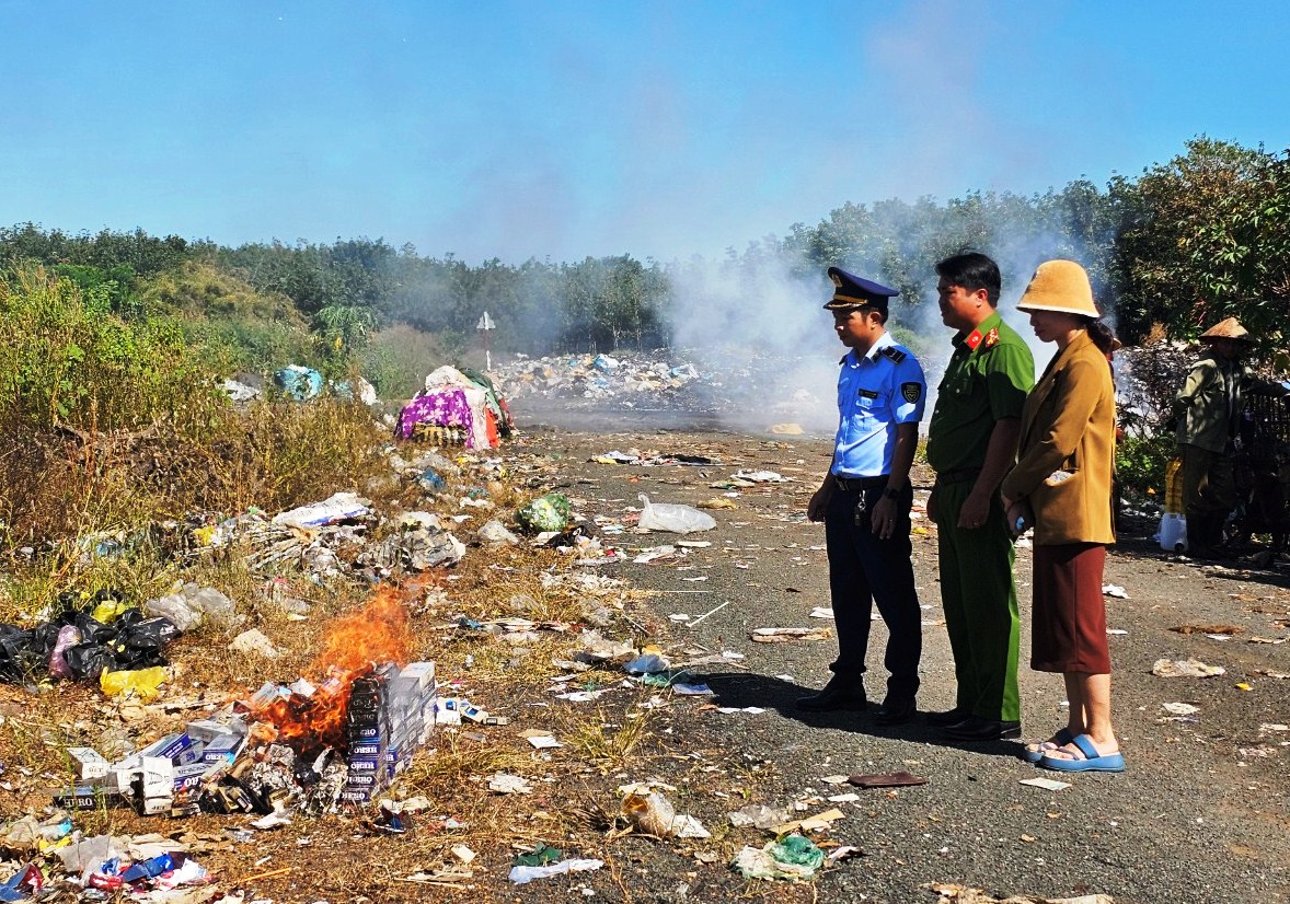 Vào lúc 10 giờ 00 phút ngày 14/12/2023. Đội Quản lý thị trường số 5 phối hợp với các cơ quan chức năng tiêu hủy tang vật vi phạm hành chính bị tịch thu là 1.000 bao thuốc lá điếu nhập lậu. Trong số 1.000 bao thuốc lá nhập lậu tiêu hủy có 705 bao thuốc lá điếu hiệu Hero, 265 bao thuốc lá điếu hiệu Jet và 30 bao thuốc lá điếu hiệu Caraven. Toàn bộ số thuốc lá điếu nhập lậu trên được các lực lượng chức năng tiêu hủy tại khu xử lý rác thuộc xã Hưng Phước, huyện Bù Đốp, tỉnh Bình Phước.
