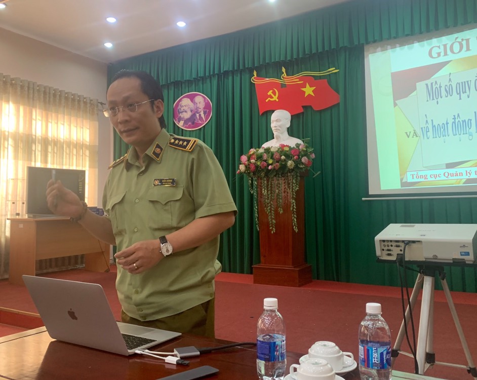 Hội nghị đã phổ biến, hướng dẫn các Nghị định, Thông tư trên giúp cho công chức tham dự nắm bắt các quy định cơ bản của Nghị định, Thông tư cũng như việc áp dụng pháp luật một cách thống nhất. TS. Kiều Dương, Vụ phó phụ trách Vụ Chính sách - Pháp chế thuộc Tổng cục Quản lý thị trường đã giải đáp những quy định chung của Nghị định, Thông tư cũng như giải đáp những khó khăn vướng mắc trong quá trình áp dụng các văn bản quy phạm pháp luật của công chức trong công tác kiểm tra, kiểm soát thị trường, xử lý vi phạm hành chính.