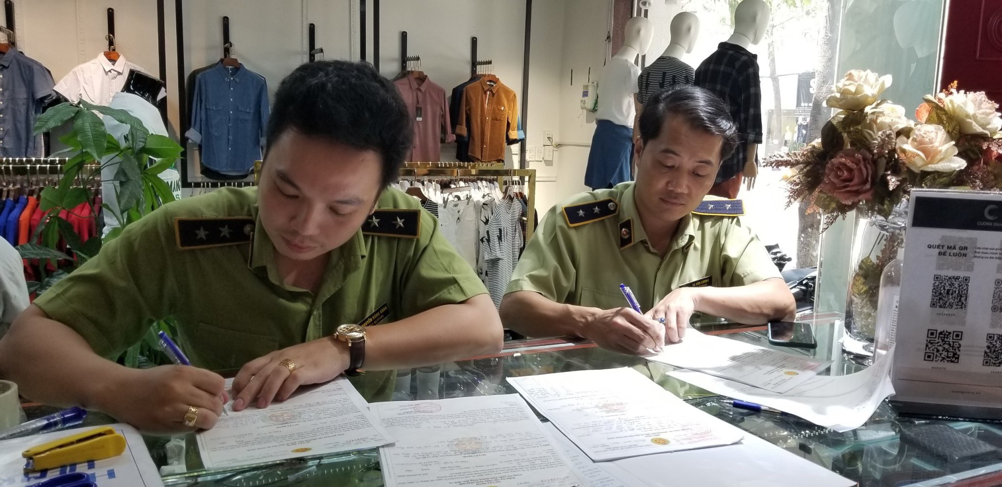 Tại thời điểm kiểm tra, 4 cửa hàng đang hoạt động kinh doanh, mua bán hàng hóa thời trang may sẵn bao gồm giày dép, ví, thắt lưng các loại. Số lượng thống kê cụ thể như sau: thắt lung 186 cái, ví da nam 26 cái, giày nam 26 đôi, dép nam 02 đôi, áo thun 12 cái, Quần 7 cái. Tất cả các cơ sở chưa xuất trình được hóa đơn, chứng từ chứng minh nguồn gốc xuất xứ hàng hóa. Hàng hóa có dấu hiệu giả mạo nhãn hiệu nổi tiếng được bảo hộ độc quyền tại Việt Nam. Đoàn kiểm tra tiến hành lập biên bản niêm phong tạm giữ toàn bộ số hàng hóa nêu trên để tiếp tục xác minh làm rõ theo quy định của pháp luật.