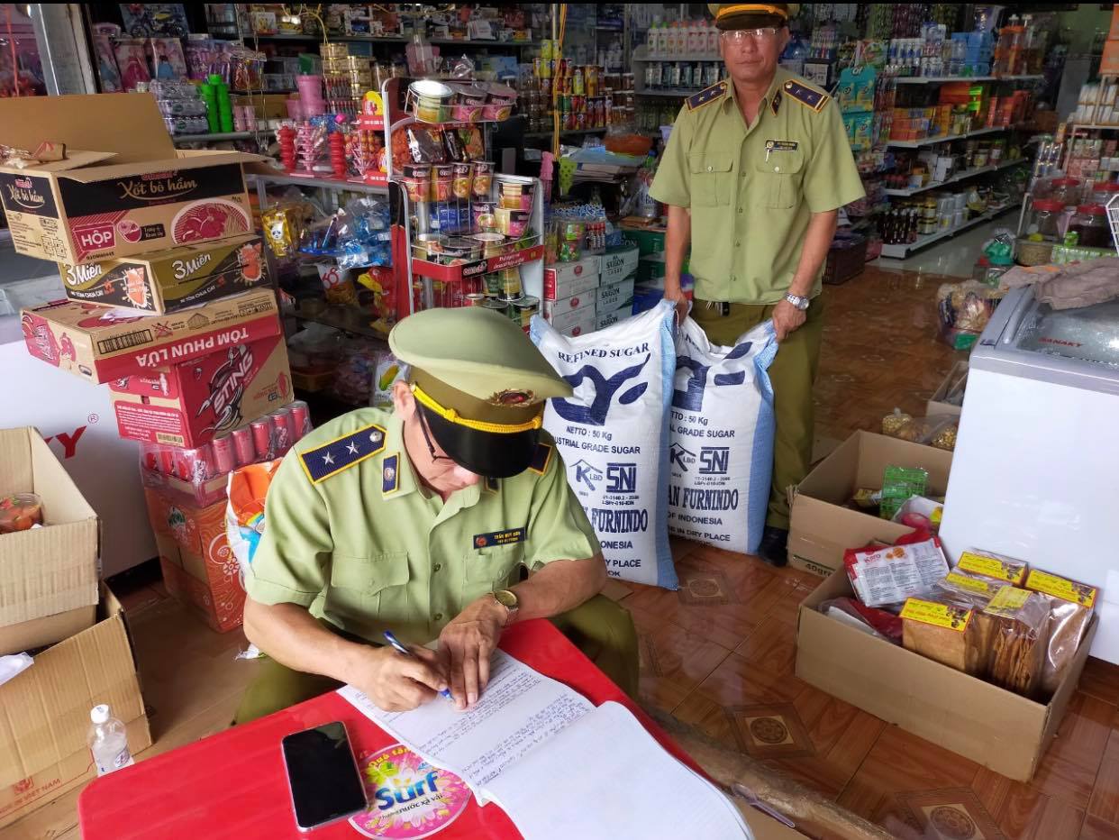 Qua kiểm tra, Đoàn kiểm tra phát hiện cơ sở đang bày bán 02 bao đường cát mang nhãn hiệu “PT.ANDALAN FURNINDO” có trọng tổng lượng 100 kg do INDONESIA sản xuất nhưng chủ cơ sở kinh doanh không xuất trình được hóa đơn, chứng từ chứng minh nguồn gốc hợp pháp của hàng hóa.