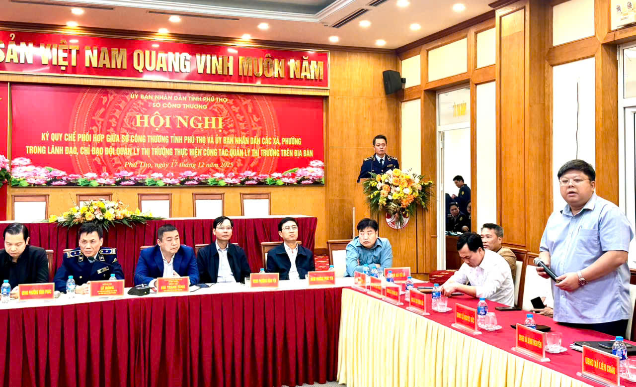Để thống nhất trong điều hành, lãnh đạo, chỉ đạo góp phần nâng cao hiệu quả công tác Quản lý thị trường tại địa phương, ngày 17/12/2025, tại Trung tâm Hội nghị khu vực tỉnh Vĩnh Phúc cũ, Sở Công Thương tỉnh Phú Thọ cùng với UBND 04 phường, 32 xã khu vực Vĩnh Phúc cũ tổ chức Hội nghị Ký Quy chế phối hợp trong lãnh đạo, chỉ đạo các Đội Quản lý thị trường thực hiện nhiệm vụ chính trị trên địa bàn